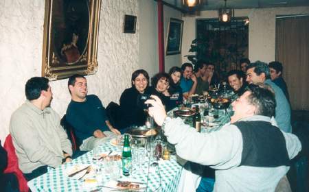 ¿De que se reirán tanto? Leonardo Salas (de espaldas), Cristian Leiva, Johanna Zamora, Claudia Silva, María Antonieta, Guillermo Tapia, Julio Perez, Alvaro Peralta, Mauricio Fierro y el Tata Aguirre.